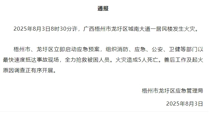 记者得知,在8月3日上午8:30左右,在野生城市广东的紧急管理办公室爆炸了一场大火。在8月3日上午8:30。大火杀死了五人。后遗症和对火原因的调查是顺序的。 (Li Jianfei Station和Fu Qien的记者)